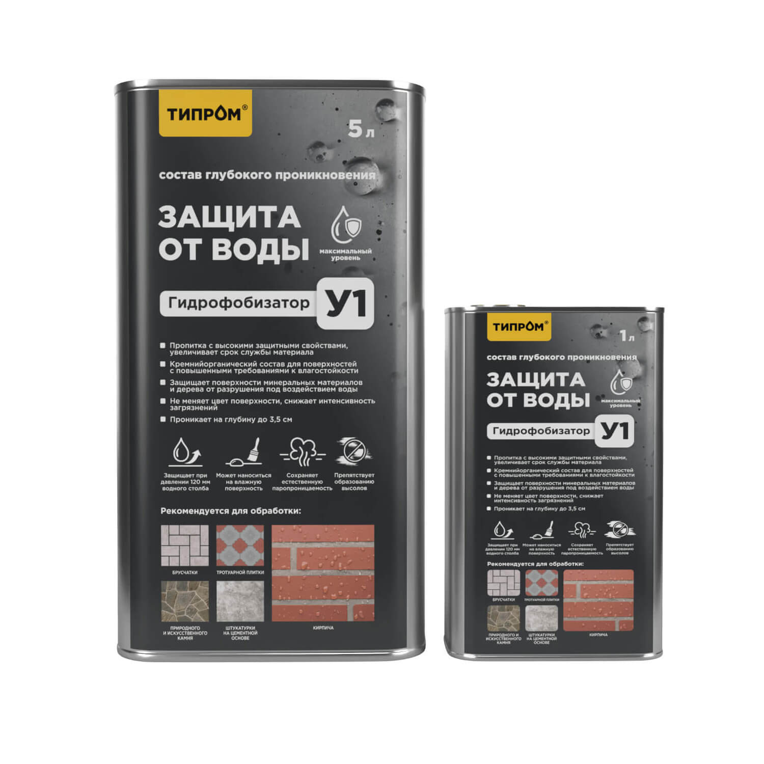 Гидрофобизаторы фасадные Типром У, Типром У1, Типром К, Типром К Люкс и Wepost Luxe - кремнийорганические составы, характеризующиеся уникальными свойствами: