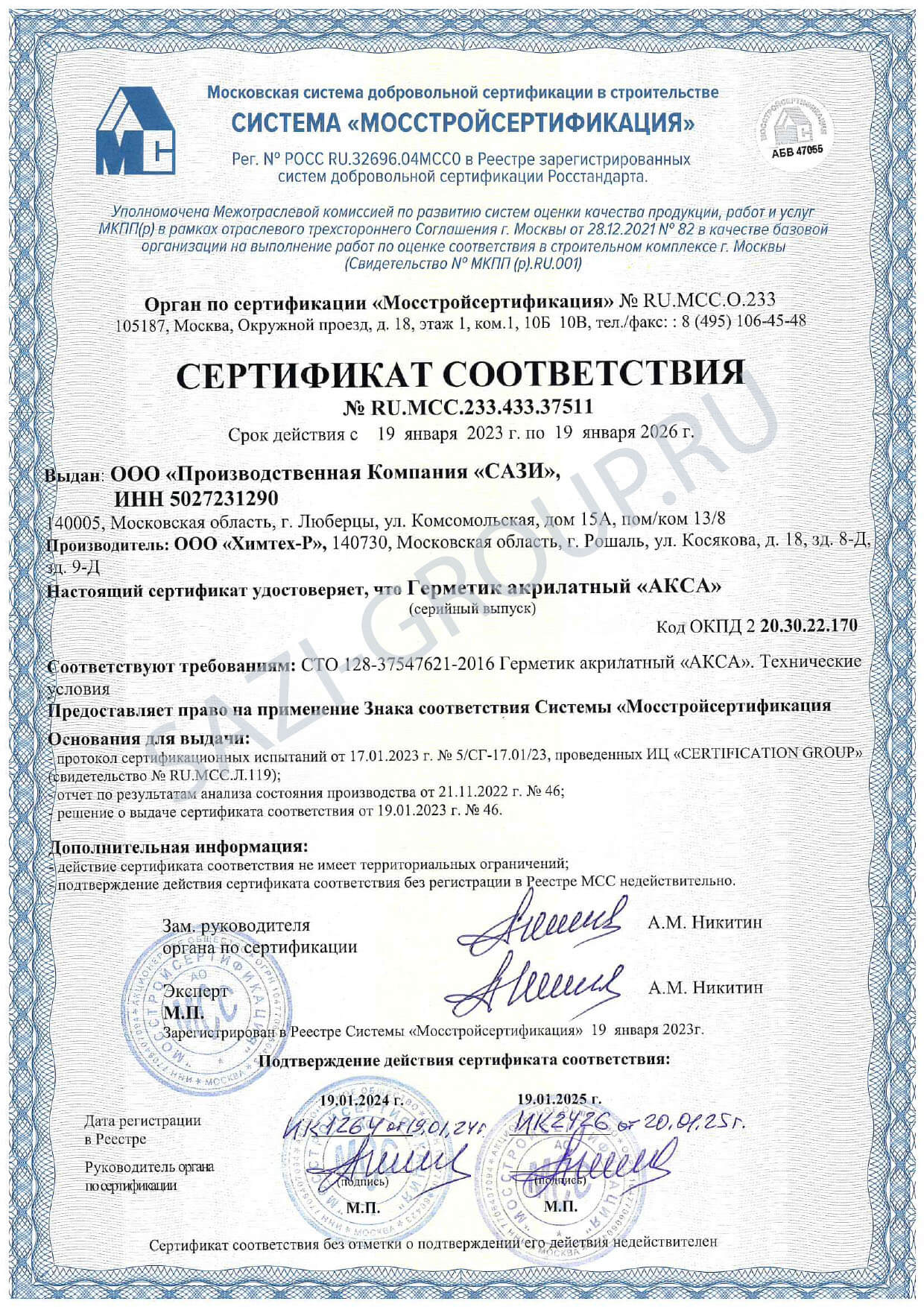 • Сертификат соответствия Сертификат соответствия АКСА Сертификат соответствия АКСА